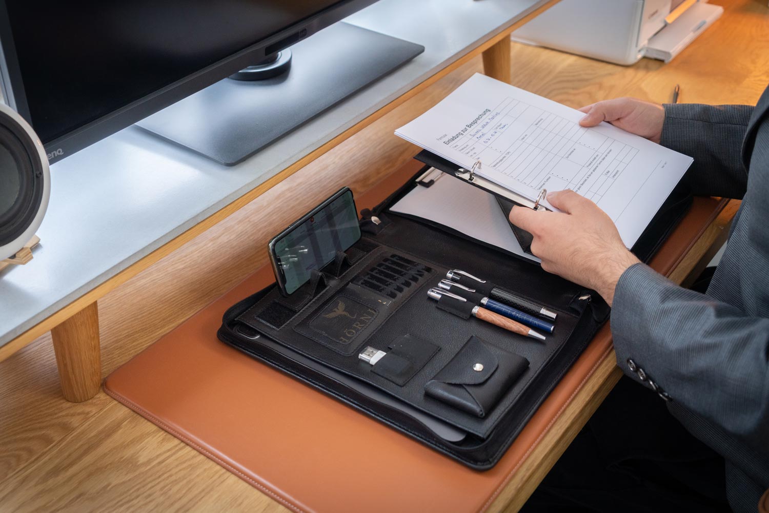 Bereits die Optik in klassischem Schwarz und der Duft des frisch gegerbten Leders lassen erahnen: Hier handelt es sich nicht um irgendeinen Ordner.