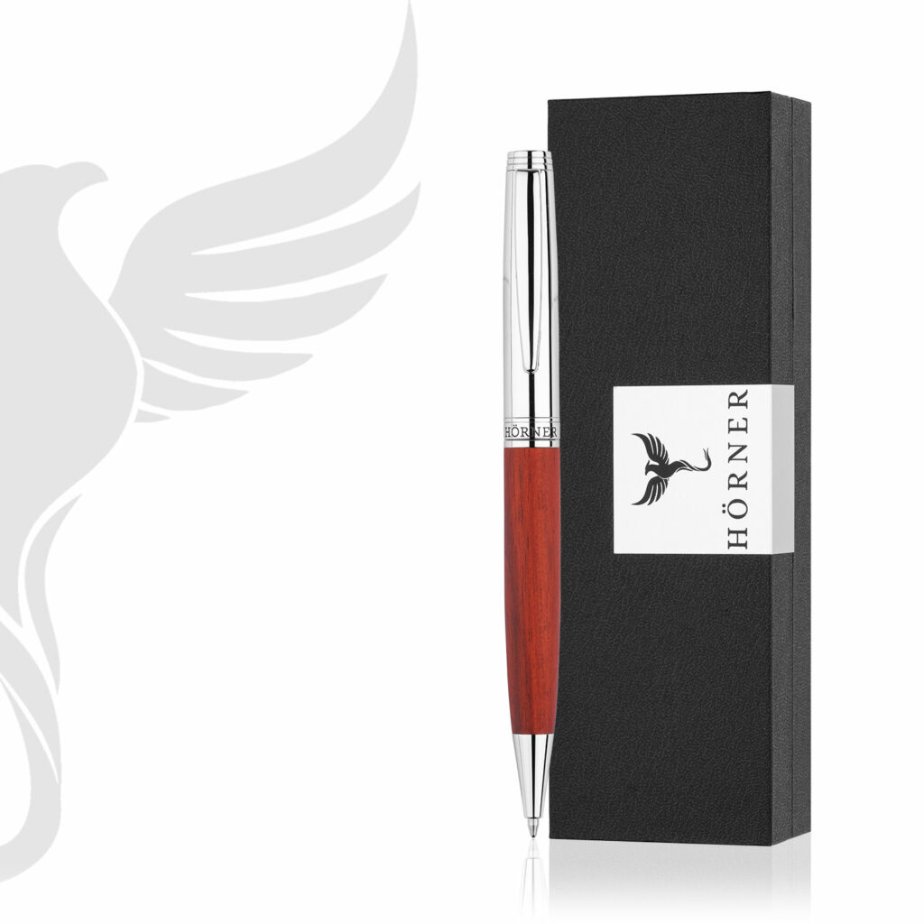 Der Kugelschreiber Hörner Nobilis wird in einem hochwertigen Schreibetui geliefert und eignet sich sowohl als Geschenk für Freunde als auch als hochwertiges Schreibgerät im Business-Alltag.